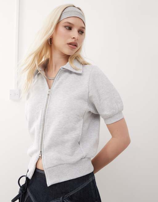 COLLUSION – Kurzärmliges Sweatshirt-Oberteil in grau meliert mit durchgehendem Reißverschluss