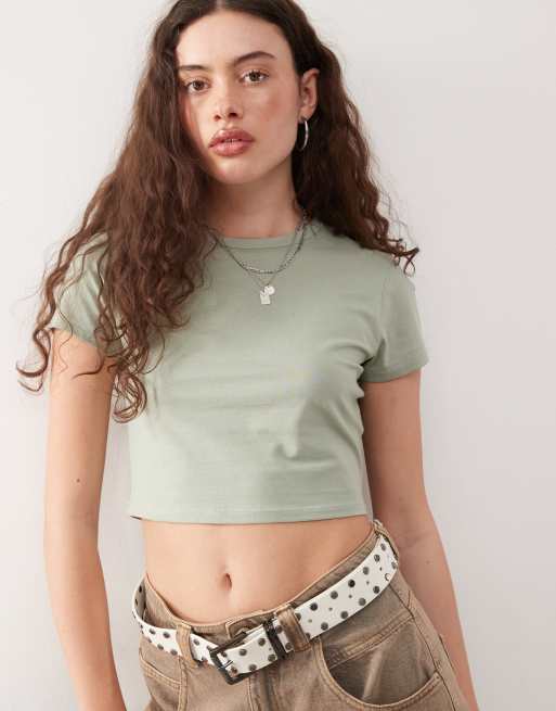 COLLUSION – Kurzärmliges T-Shirt mit superkurzem Schnitt in Khaki