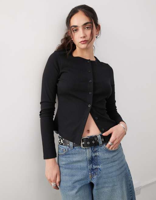 COLLUSION – Langärmlige Pointelle-Strickjacke in Schwarz