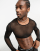 COLLUSION – Langärmliges, kurzes Fischnetz-Oberteil in Schwarz