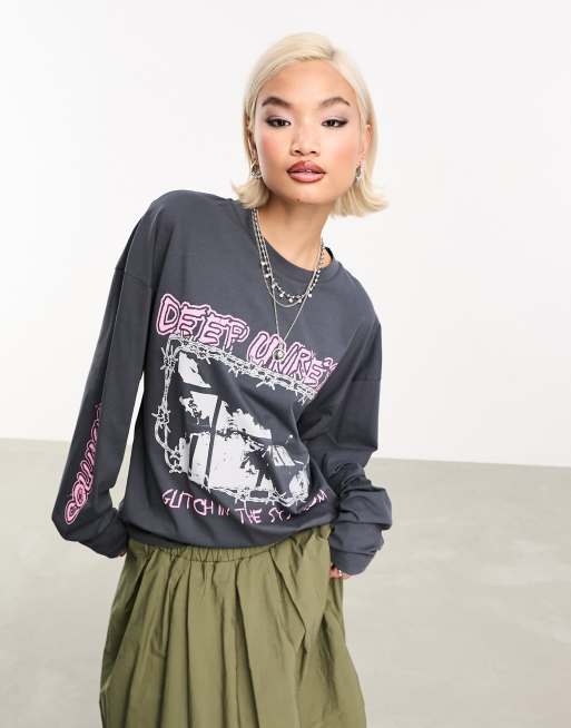 COLLUSION – Langärmliges Oversize-Shirt in verwaschenem Grau mit Grafikprint