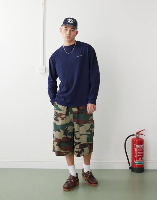 COLLUSION – Langärmliges Shirt in Marineblau mit rosa Logoprint
