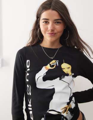 COLLUSION – Langärmliges Shirt in Schwarz mit Print
