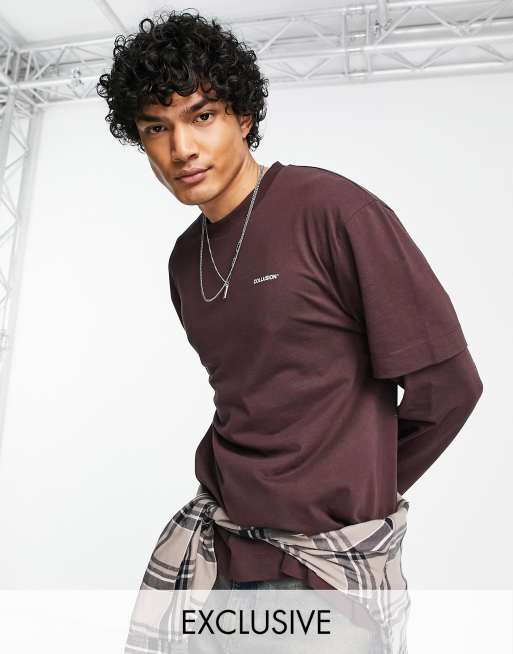 COLLUSION – Langärmliges Shirt mit falschen Ärmeln in Braun