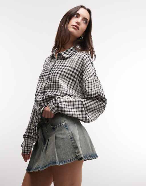 COLLUSION – Langärmliges, tailliertes Hemd in Beige und Schwarz kariert