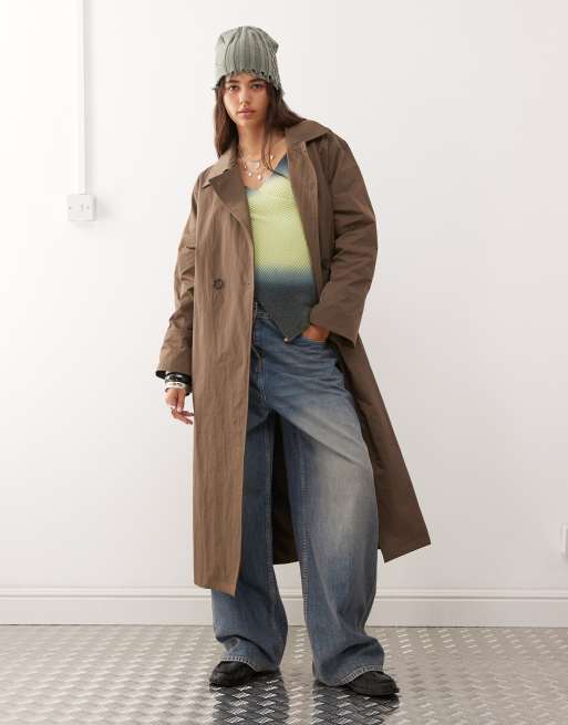 COLLUSION – Longline-Trenchjacke in Braun