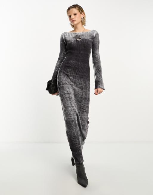 COLLUSION – Maxikleid in schwarzer Acid-Waschung mit U-Boot-Ausschnitt