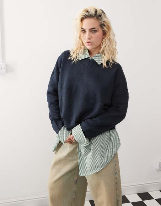 COLLUSION – Meet & Greet – Pullover in Marineblau mit V-Ausschnitt und gerippten Ärmeln