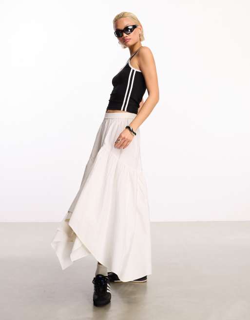COLLUSION – Midirock aus Baumwollpopeline in Weiß mit asymmetrischem Saum