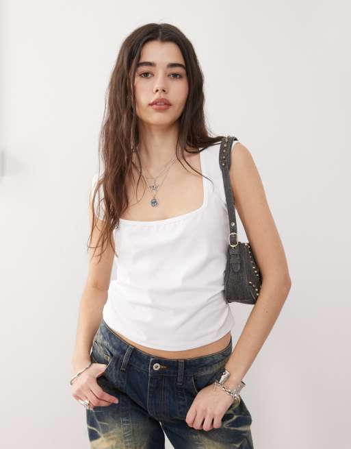 COLLUSION – Oberteil in Weiß mit eckigem Ausschnitt