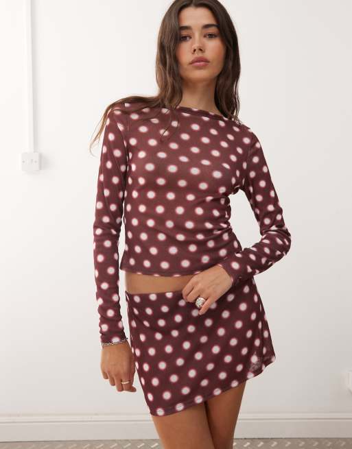 COLLUSION – Oberteil mit U-Boot-Ausschnitt und verschwommenen Polka Dots
