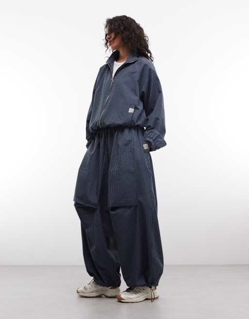 COLLUSION – Oversize-Set aus Nylon mit Karomuster, bestehend aus weiter Trainingsjacke und Jogginghose