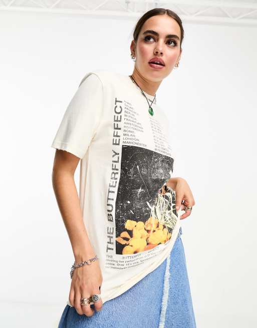 COLLUSION – Oversize-T-Shirt in Ecru mit Grafikprint vorne und Used-Details