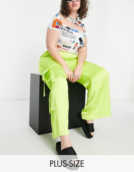 COLLUSION Plus – Cargohose aus Satin in Limettengrün