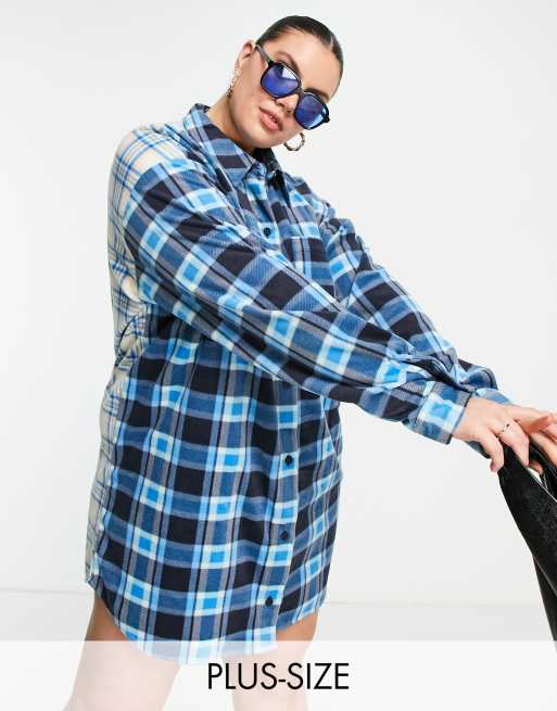 COLLUSION Plus – Kurzes Oversize-Hemdkleid aus Fleece mit Karomuster-Mix