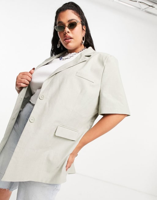 COLLUSION Plus –Schmal geschnittene Shorts und Blazer in Hellgrün