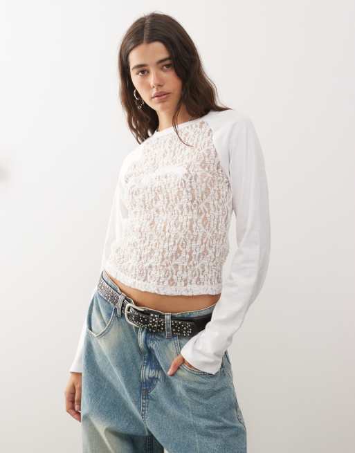 COLLUSION – Raglan-T-Shirt aus Stoffmix mit strukturierter Spitze
