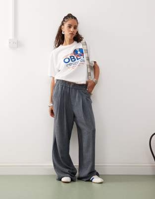 COLLUSION – Relaxed Fit Schlupfhose in Marineblau mit Streifen