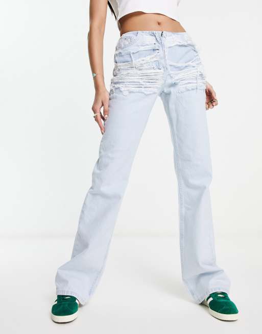 COLLUSION – Schlagjeans im Y2K-Stil in Hellblau mit Bund im Used-Look
