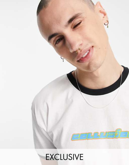 COLLUSION – Schmal geschnittenes Ringer-T-Shirt in Weiß mit Logo