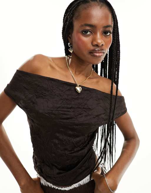 COLLUSION – Schulterfreies Oberteil in Braun mit Knitterstruktur