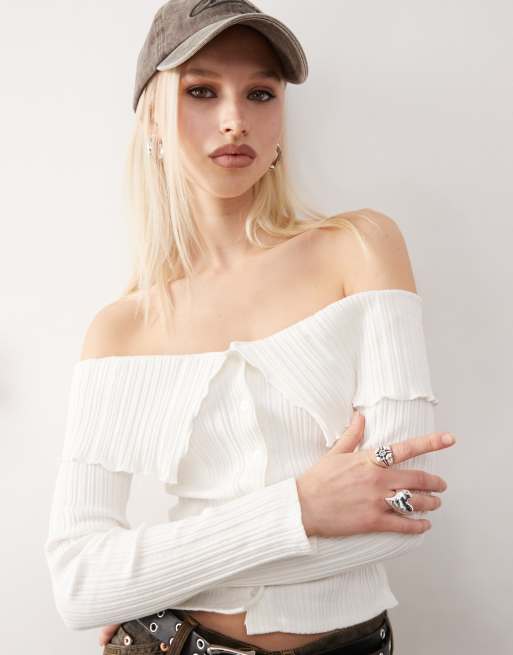 COLLUSION – Schulterfreies Oberteil in Cremeweiß mit Knopfleiste