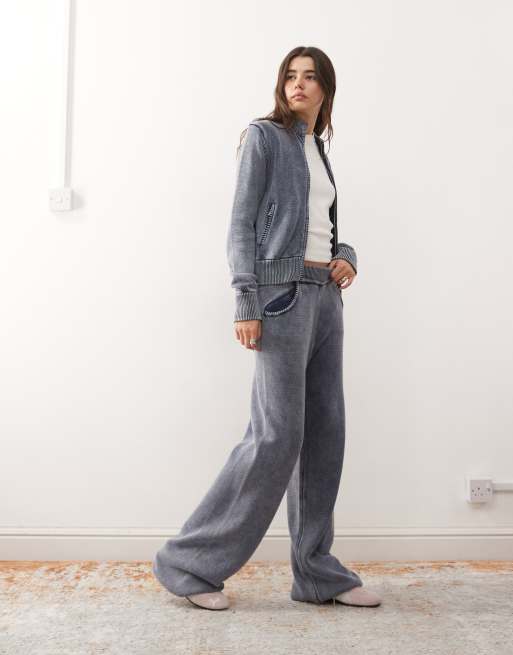 COLLUSION – Schwere Waffelstrick-Jogginghose in Blau mit Acid-Waschung, Kombiteil