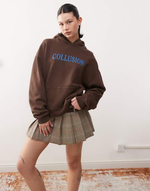 COLLUSION – Schwerer Kapuzenpullover in Braun mit Logostickerei