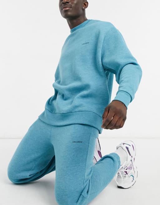 COLLUSION – Set mit T-Shirt, Sweatshirt und Jogginghose in hellem Blaugrau