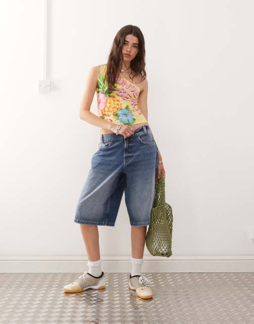 COLLUSION – Skater-Jorts aus Denim in Rinse-Waschung mit Kontrastnaht