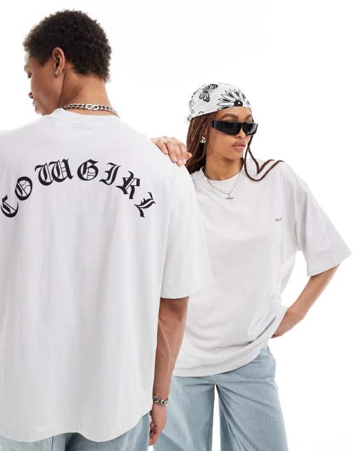 COLLUSION – SLOGAN – Unisex – Skater Fit T-Shirt in Weiß mit Western-Cowgirl-Schriftzug