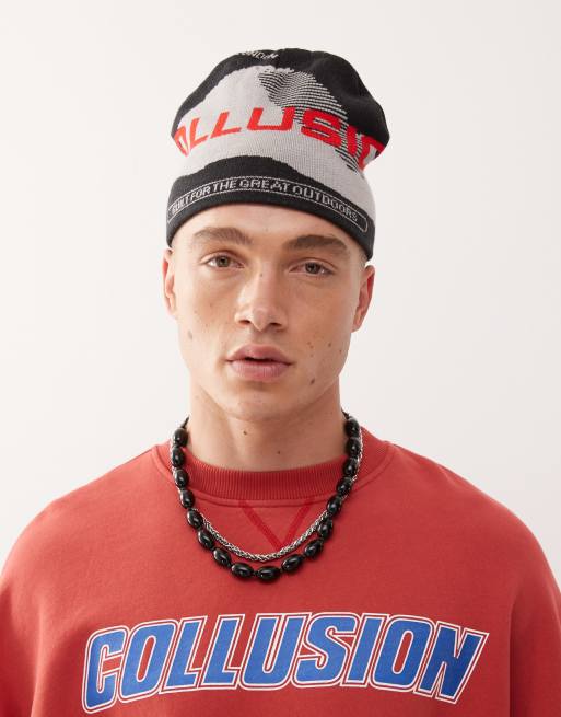 COLLUSION – Strickmütze in Schwarz mit Bergprint