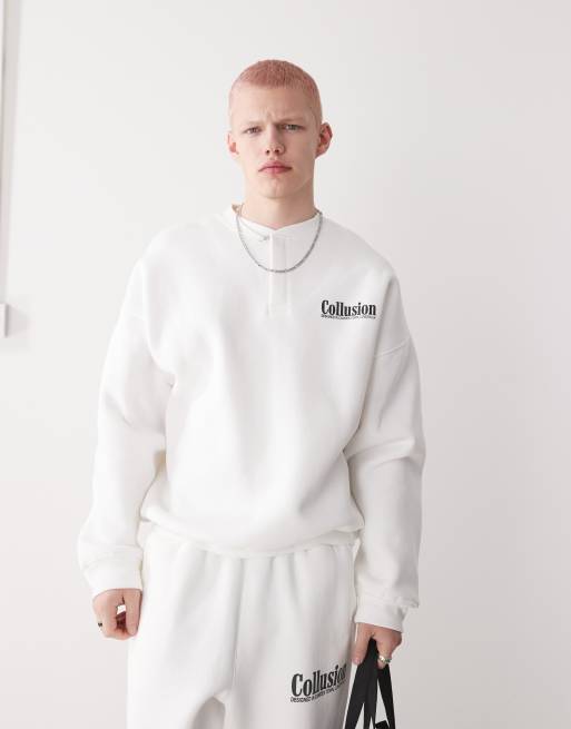 COLLUSION – Sweatshirt in Ecru mit Henley-Kragen und Print, Kombiteil