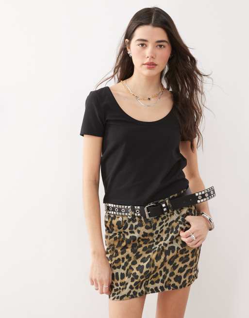 COLLUSION – T-Shirt in Schwarz mit U-Ausschnitt