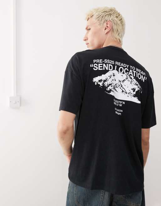 COLLUSION – T-Shirt in verwaschenem Schwarz mit „Location“-Print