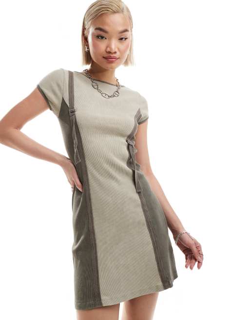 Collusion – T-Shirt-Minikleid in neutralen Farben mit Riemendetail