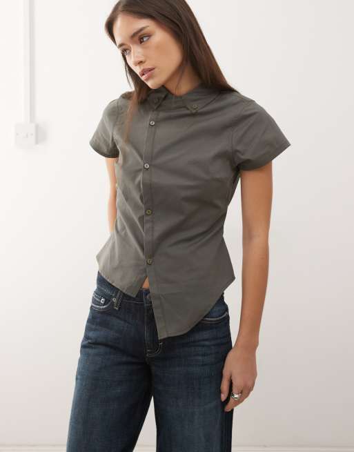 COLLUSION – Taillierte Hemdbluse in Schwarz mit asymmetrischem Saum