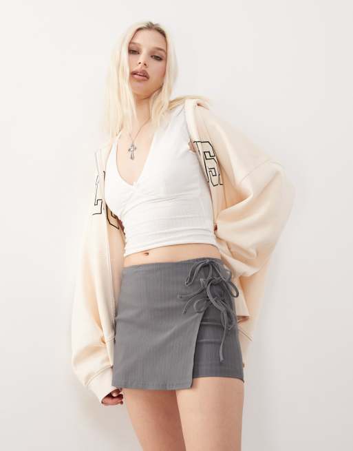 COLLUSION – Tief sitzende Skort in Wickeloptik mit Nadelstreifen und Schnürdetail