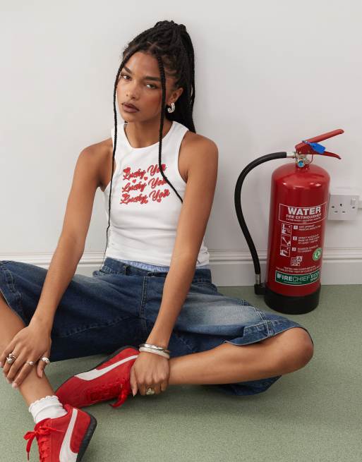 COLLUSION – Trägertop in Weiß mit „Lucky You“-Grafikprint