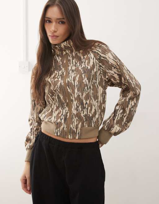 COLLUSION – Trainingsjacke mit Stehkragen, durchgehendem Reißverschluss und Military-Muster