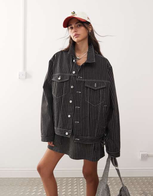 COLLUSION – Trucker-Jeansjacke in Schwarz gestreift
