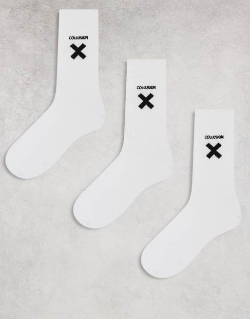 COLLUSION Unisex – 3er-Pack Socken in Weiß mit X-Logo