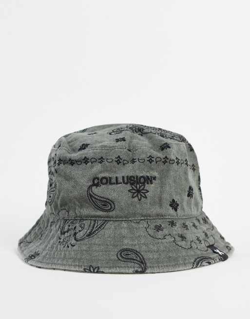 COLLUSION Unisex – Anglerhut mit Schalmuster in Anthrazit-Waschung