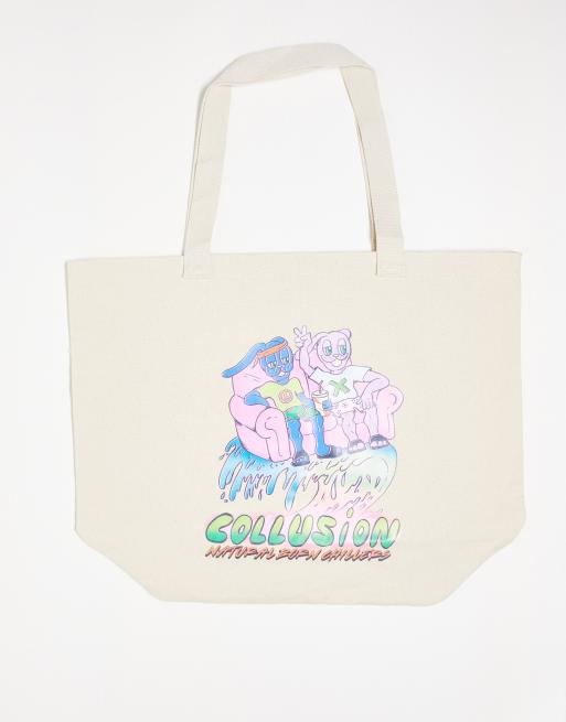 COLLUSION Unisex – Bedruckte Tragetasche in Ecru mit Logo