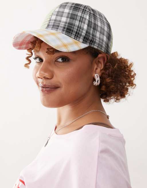 COLLUSION Unisex – Bunte Kappe mit geteiltem Karomuster