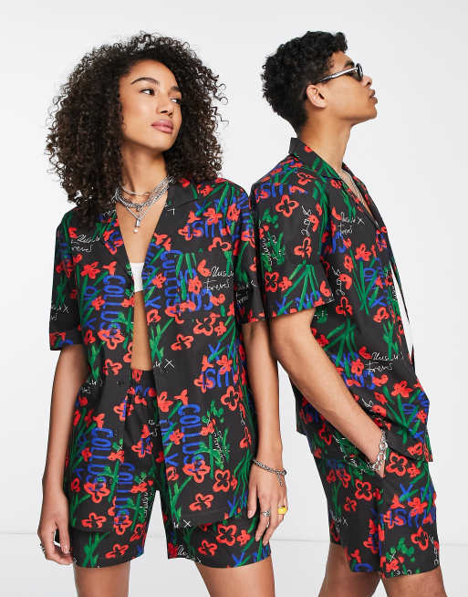 COLLUSION Unisex – Hemd mit Blumenmuster, Kombiteil