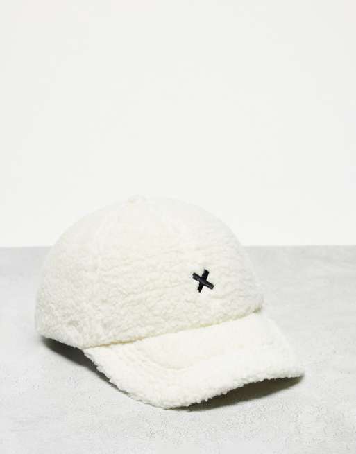 COLLUSION Unisex – Kappe aus Teddyfell in Ecru