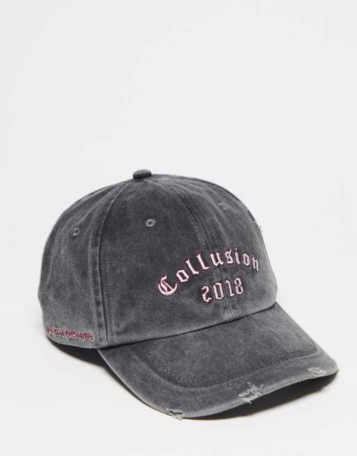 COLLUSION Unisex – Kappe in verwaschenem Grau im Used-Look mit College-Slogan