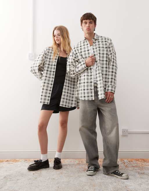 COLLUSION Unisex – Kariertes Hemd in Schwarz und Weiß