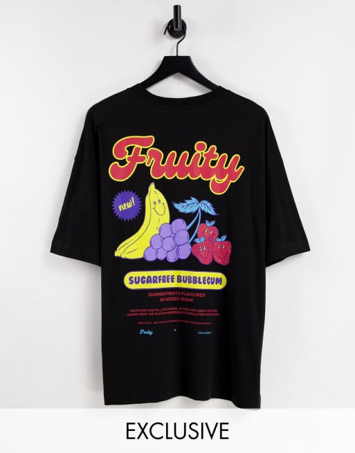 COLLUSION – Unisex – Oversize-T-Shirt in Schwarz mit „Fruity“-Print